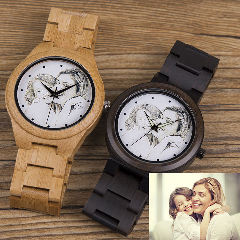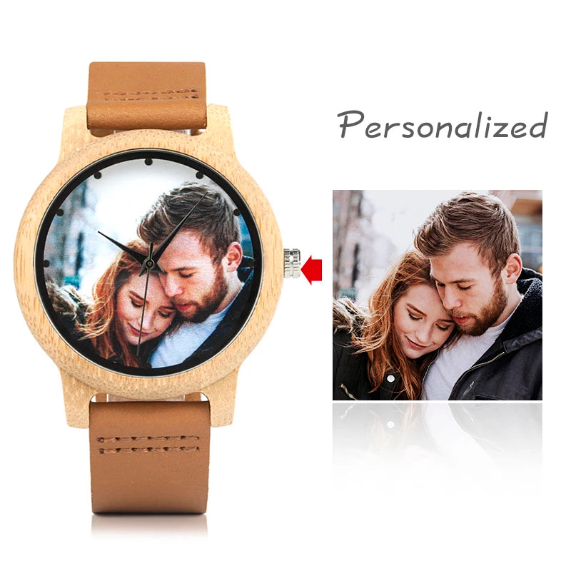 🌿 Showcasing the natural beauty of woodgrain personalized photo watch service